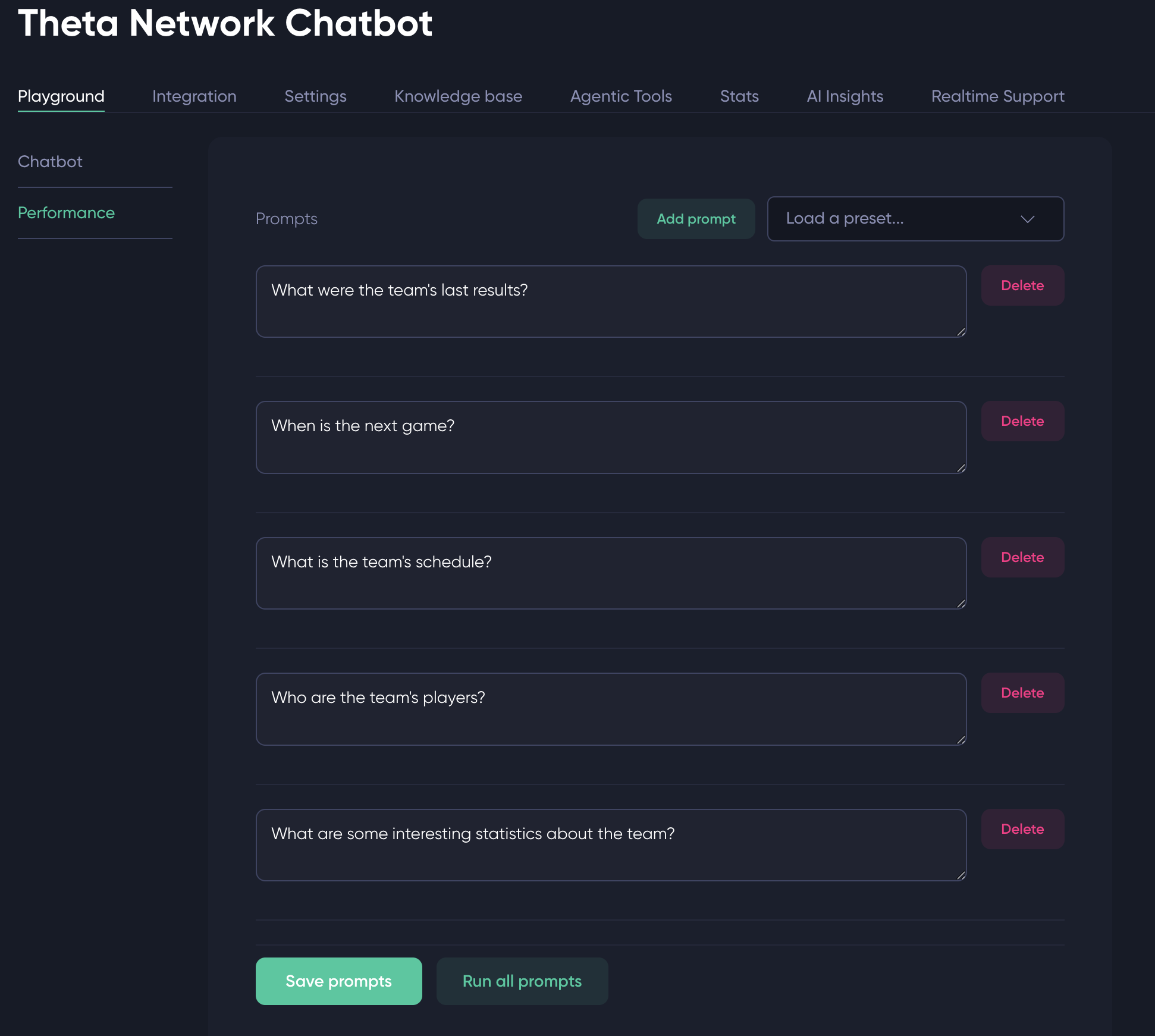 Check the answers provided by your agent easily by adding a list of prompts that can be executed in parallel