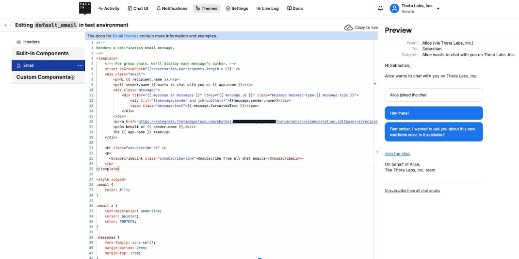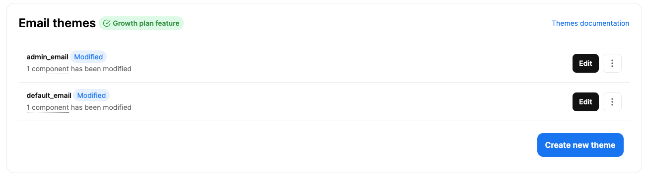 Navigate to the Themes tab in the TalkJS dashboard and look for the Email Themes.
