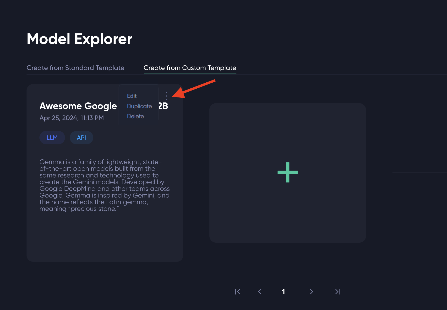 If you want to update a custom deployment template you created, simply click on the "three dots" icon on the top-right corner of the template. Then, click Edit to update the template, or Duplicate to make a duplicate of the template, or Delete to delete the template.